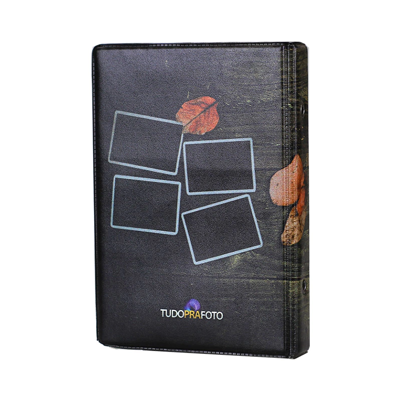 Álbum para fotos 10x15 centímetros com capacidade para 120 fotos e temática retro.