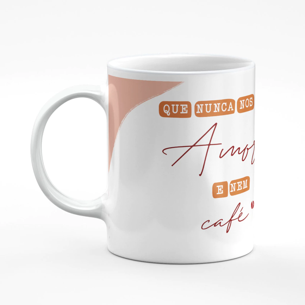 Sua estampa personalizada, possui alta qualidade de impressão e durabilidade. Com estampa de xícara de café e frase "Que nunca nos falte amor e nem café".
