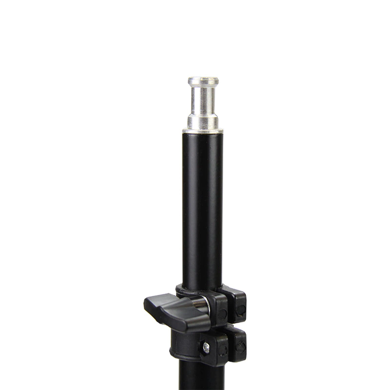 Tripé de Iluminação profissional para iluminadores de estúdio, flashes e demais acessórios fotográficos. Possui 01 secção para ajuste de tamanho do tipo borboleta, e com encaixe universal.